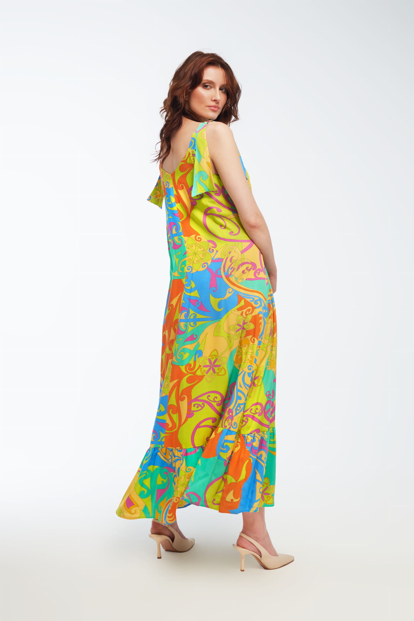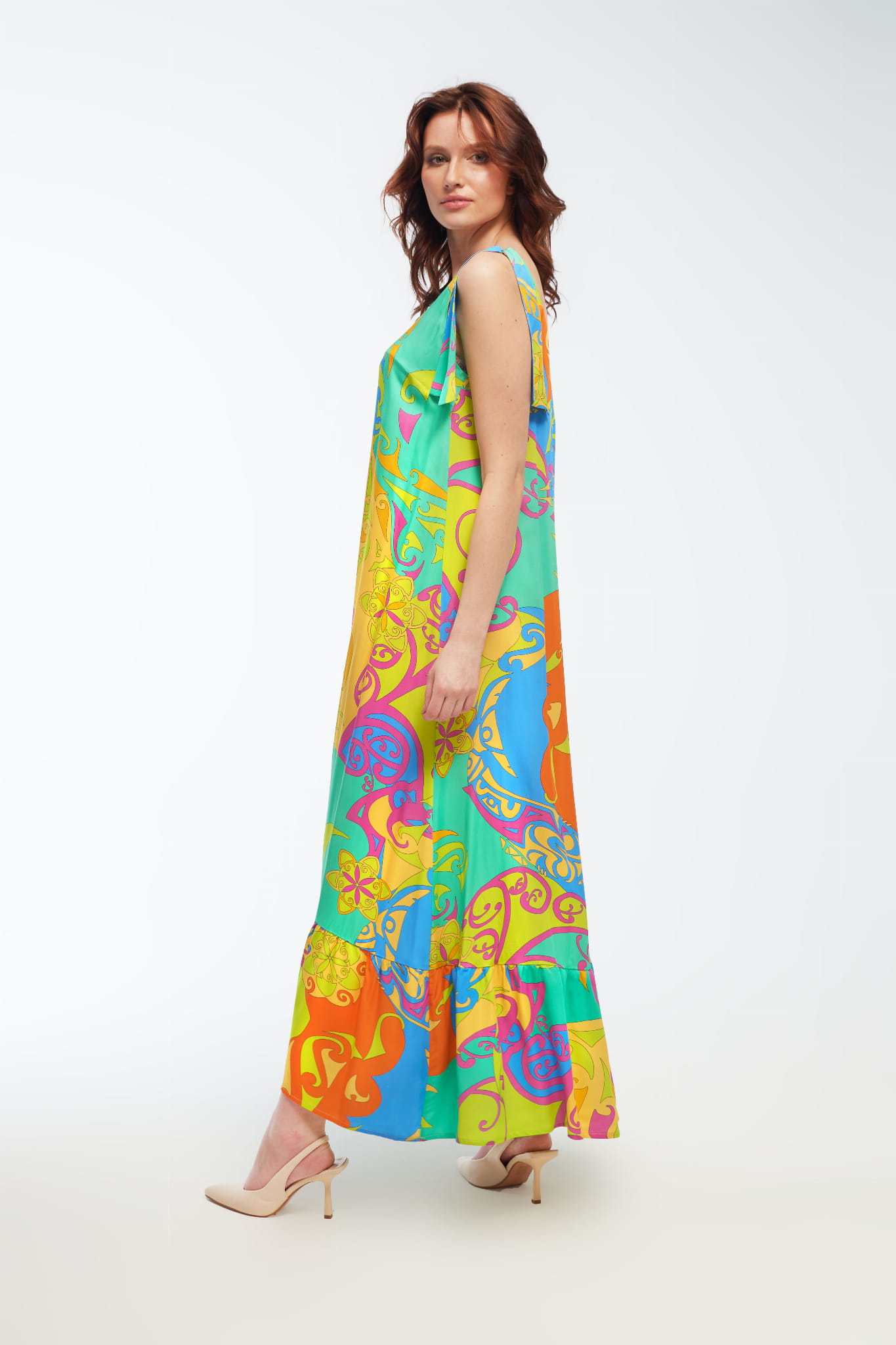 - długa sukienka z satyny wiskozowej
