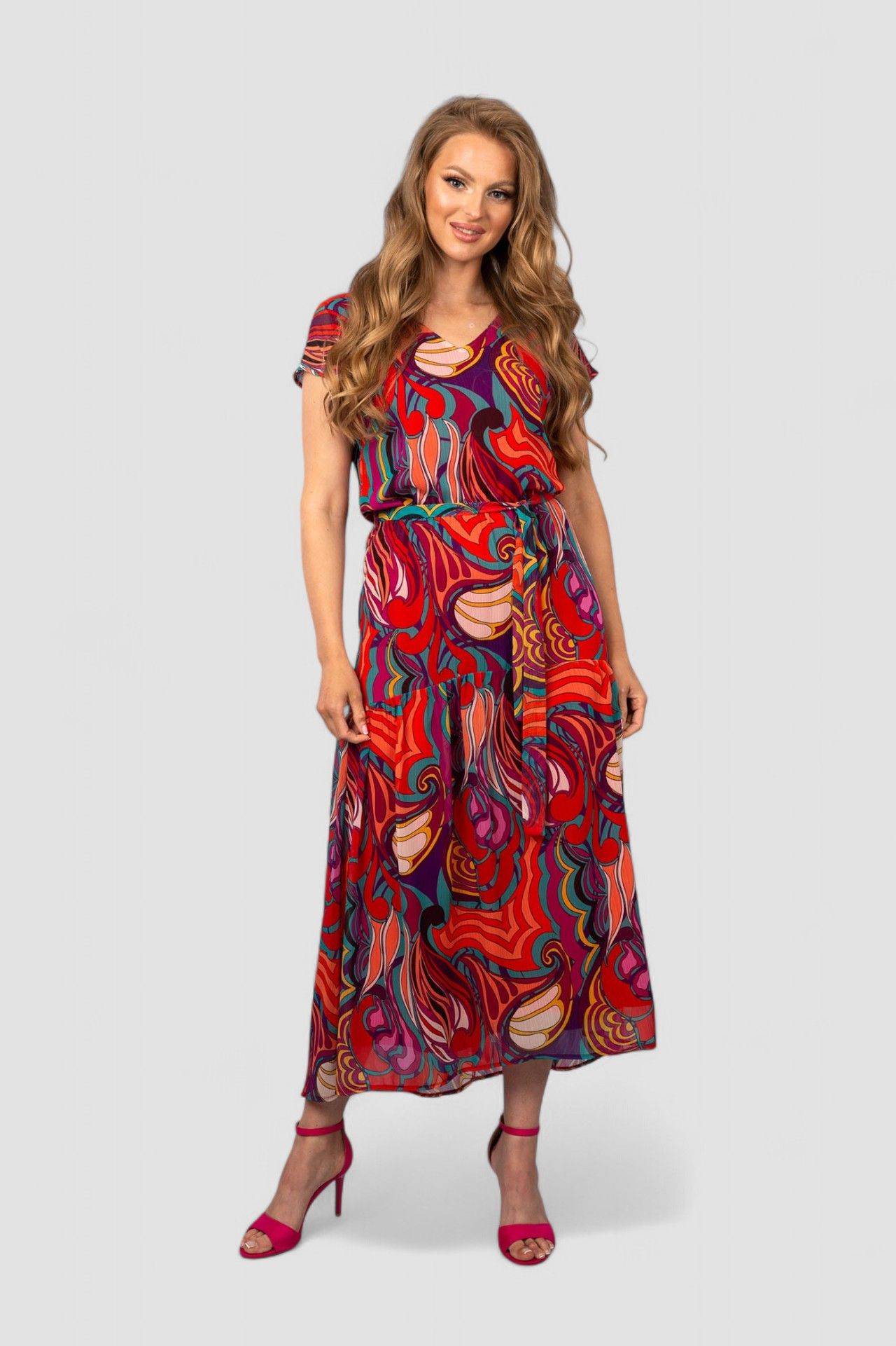Długa wzorzysta sukienka z szyfonu KATTRIN 39B