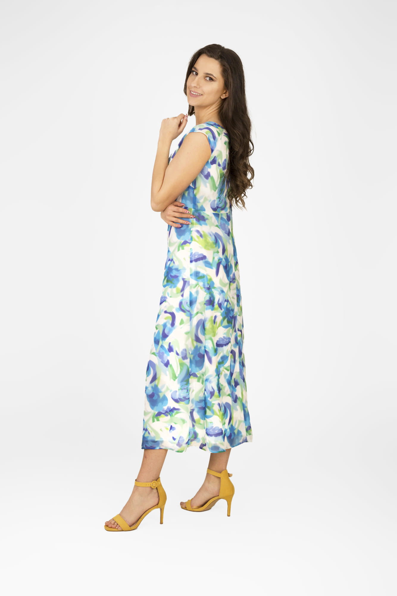 Długa wzorzysta sukienka z szyfonu MARISA 01A