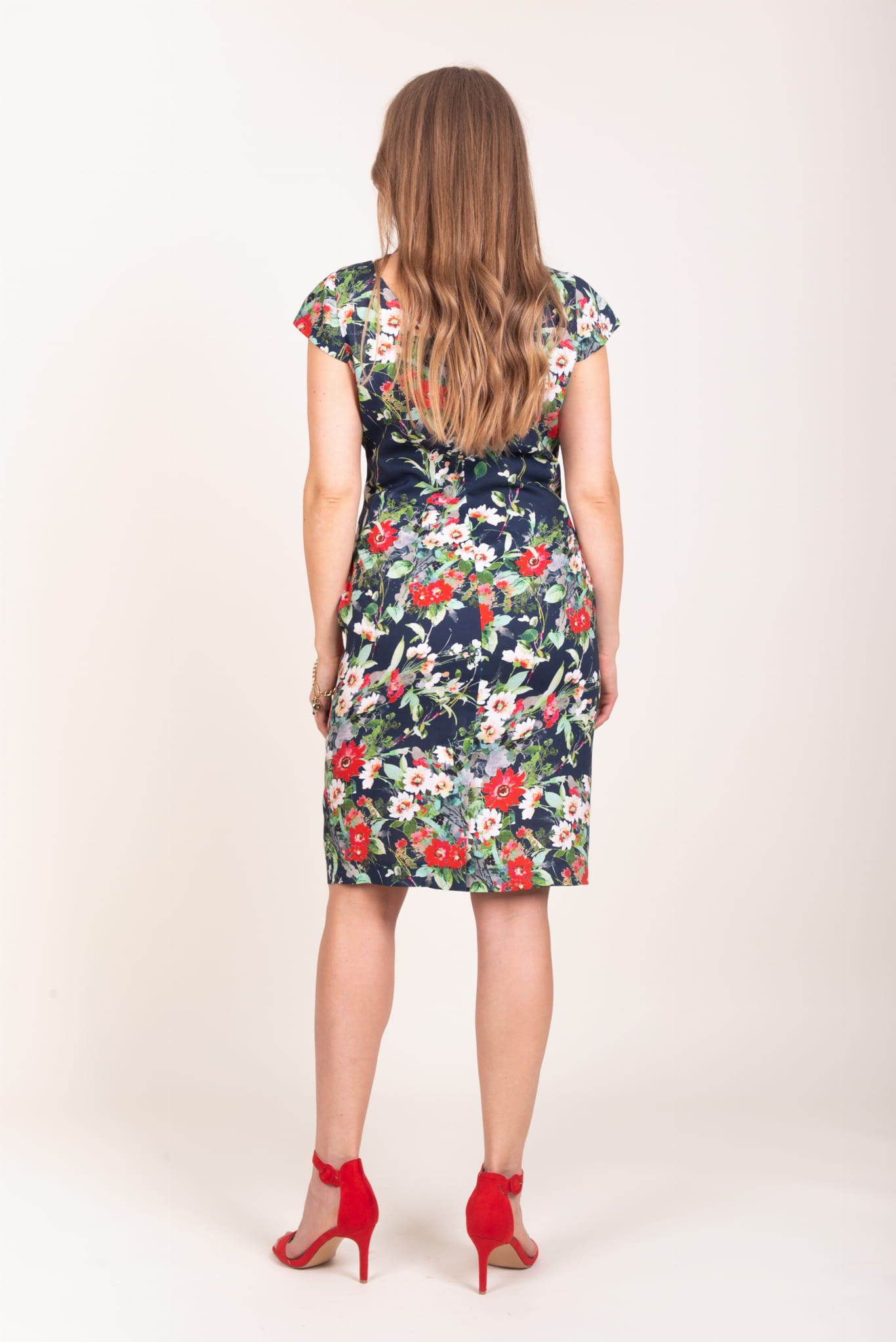 - krótka sukienka granatowa z motywem kwiatowym
