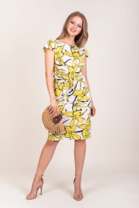 - krótka sukienka żółta z motywem kwiatowym