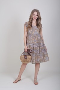 - sukienka szyfonowa, krótka, beżowa z motywem roślinnym