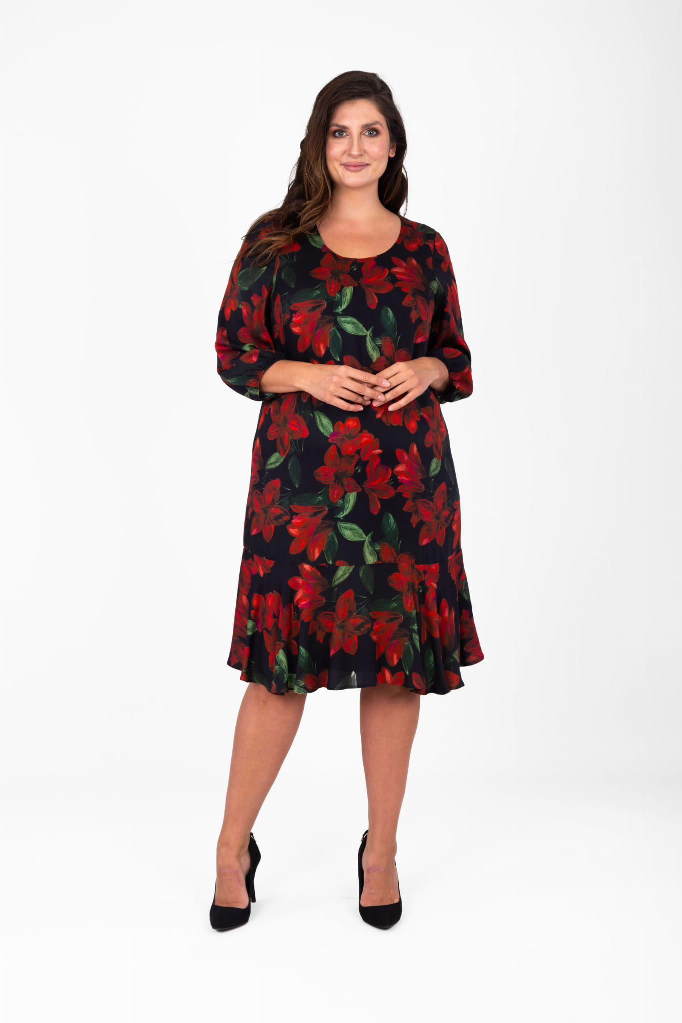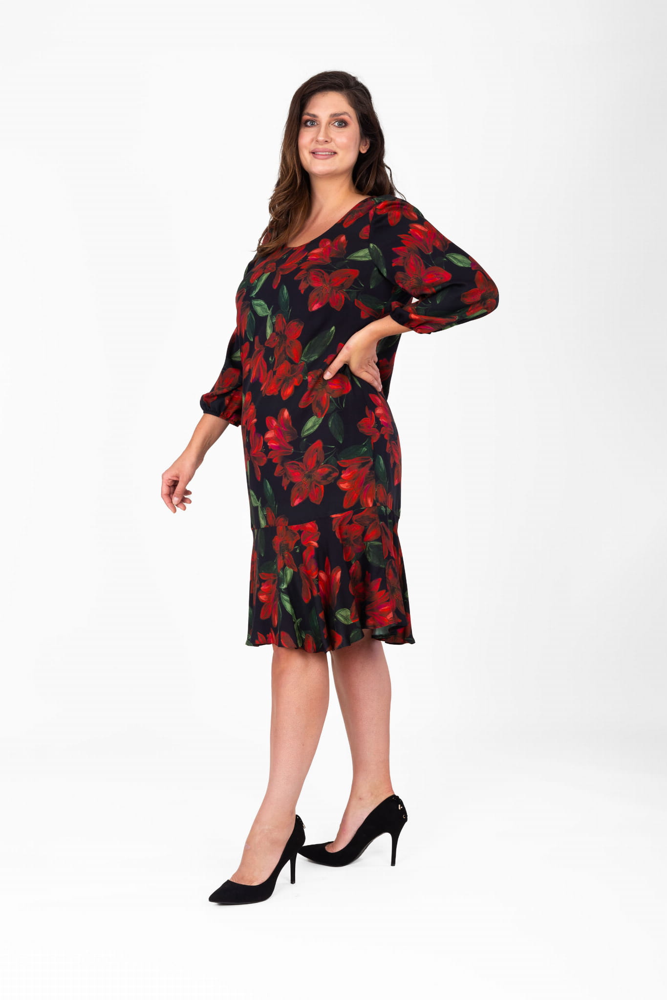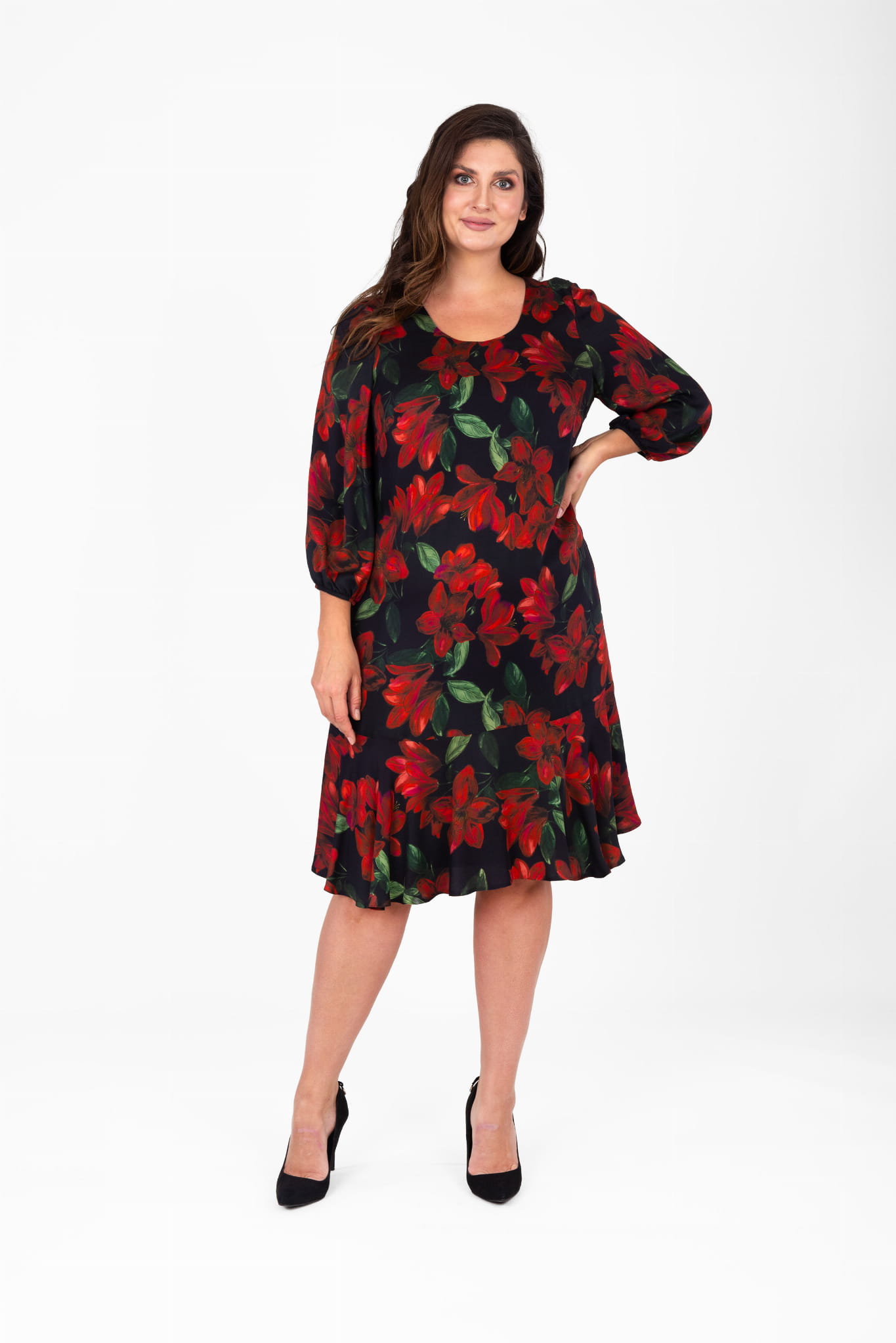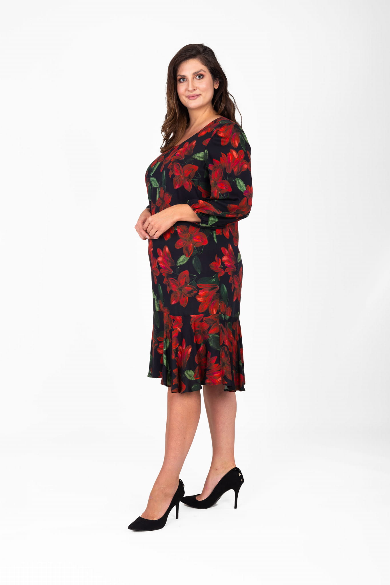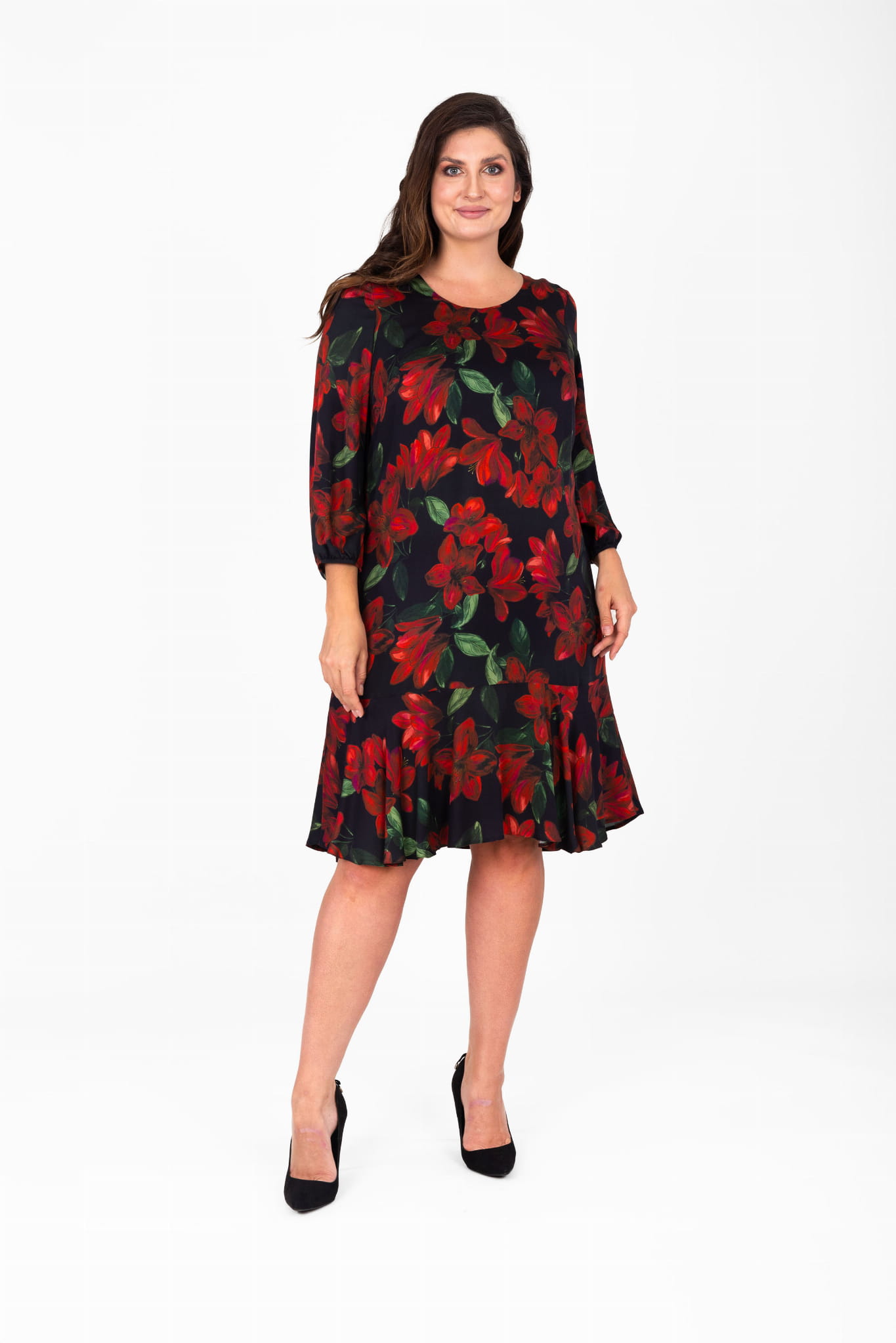 - model w kolorze czarnym z motywem kwiatowym