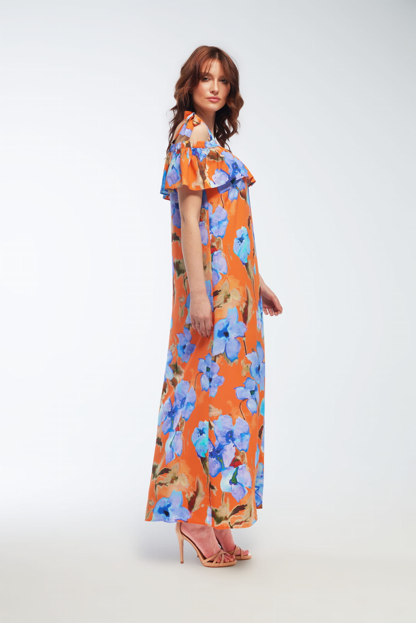 Zmysłowość i Elegancja: Ta elegancka sukienka typu „Hiszpanka" to prawdziwa kwintesencja lata, łącząca w sobie odrobinę romantyzmu z wysmakowaną dozą uwodzicielskiego uroku. Wykonana z wysokiej jakości, przewiewnej i miłej w dotyku wiskozy. Głównym jej atutem są odsłonięte ramiona, co dodaje nuty subtelnej zmysłowości. Długa, lekko rozkloszowana dołem podkreśla lekkość i swobodę, co sprawia, że ta sukienka jest idealna na letnie dni. Kwiatowe wzory, które ozdabiają tę sukienkę, dodają jej delikatności i romantyzmu, podkreślając naturalny urok noszącej ją kobiety. Jest to ubranie, które doskonale sprawdzi się na różnych okazjach, od romantycznej kolacji przy zachodzie słońca po wieczorne spotkania ze znajomymi. Jest to niezwykle wszechstronna sukienka, która zachwyci nie tylko swoim wyglądem, ale także wygodą i funkcjonalnością.