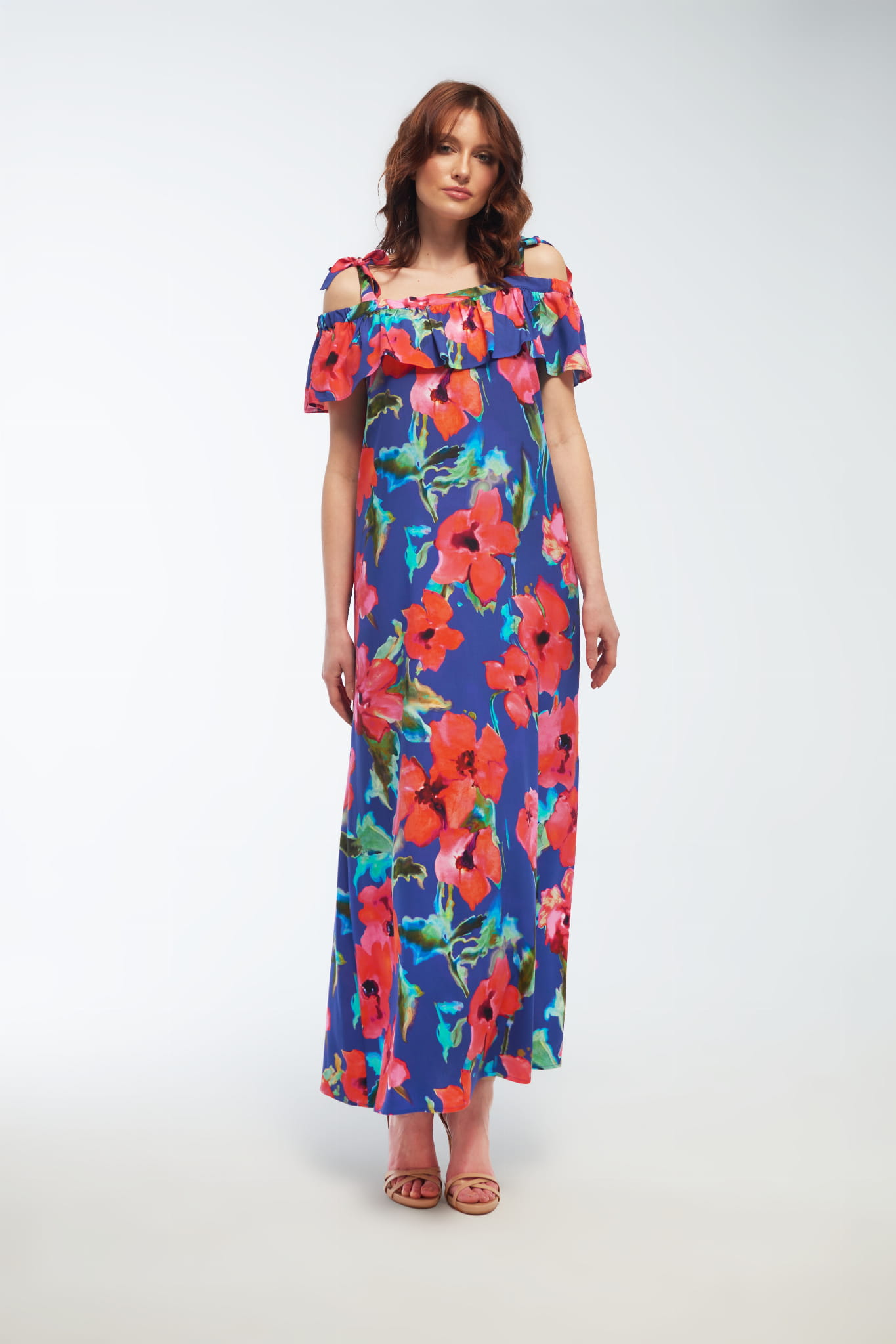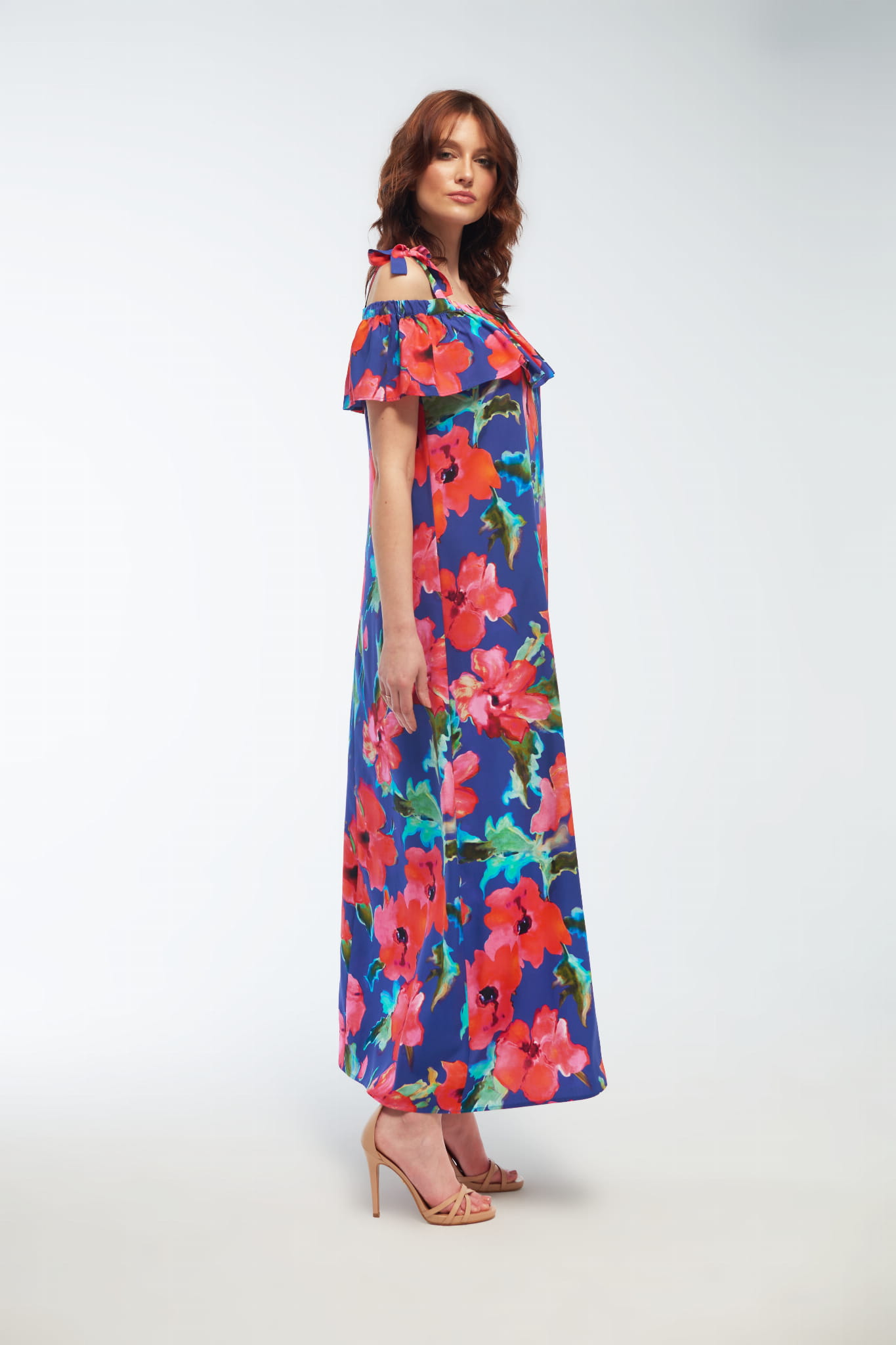Zmysłowość i Elegancja: Ta elegancka sukienka typu „Hiszpanka" to prawdziwa kwintesencja lata, łącząca w sobie odrobinę romantyzmu z wysmakowaną dozą uwodzicielskiego uroku. Wykonana z wysokiej jakości, przewiewnej i miłej w dotyku wiskozy. Głównym jej atutem są odsłonięte ramiona, co dodaje nuty subtelnej zmysłowości. Długa, lekko rozkloszowana dołem podkreśla lekkość i swobodę, co sprawia, że ta sukienka jest idealna na letnie dni. Kwiatowe wzory, które ozdabiają tę sukienkę, dodają jej delikatności i romantyzmu, podkreślając naturalny urok noszącej ją kobiety. Jest to ubranie, które doskonale sprawdzi się na różnych okazjach, od romantycznej kolacji przy zachodzie słońca po wieczorne spotkania ze znajomymi. Jest to niezwykle wszechstronna sukienka, która zachwyci nie tylko swoim wyglądem, ale także wygodą i funkcjonalnością.