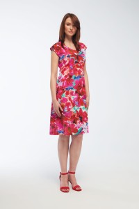 Komfrot i Styl: Rozkoszuj się latem w naszej krótkiej sukience z najwyższej jakości wiskozy, która emanuje elegancją i lekkością. Ta krótka sukienka to hołd dla letniej przyjemności, wykonana z tkaniny drukowanej w kwiatowy wzór, który odzwierciedla harmonię natury. Jej krótki rękaw i długość dodają nuty swobody i wyrafinowania, tworząc idealną równowagę między komfortem a stylem. Zaprojektowana z myślą o letnich dniach, ta sukienka doskonale komponuje się z każdą okazją, dodając blasku każdemu letniemu wydarzeniu. Odkryj uczucie swobody i elegancji, nosząc tę sukienkę, która jest niczym wiatr letniego popołudnia.