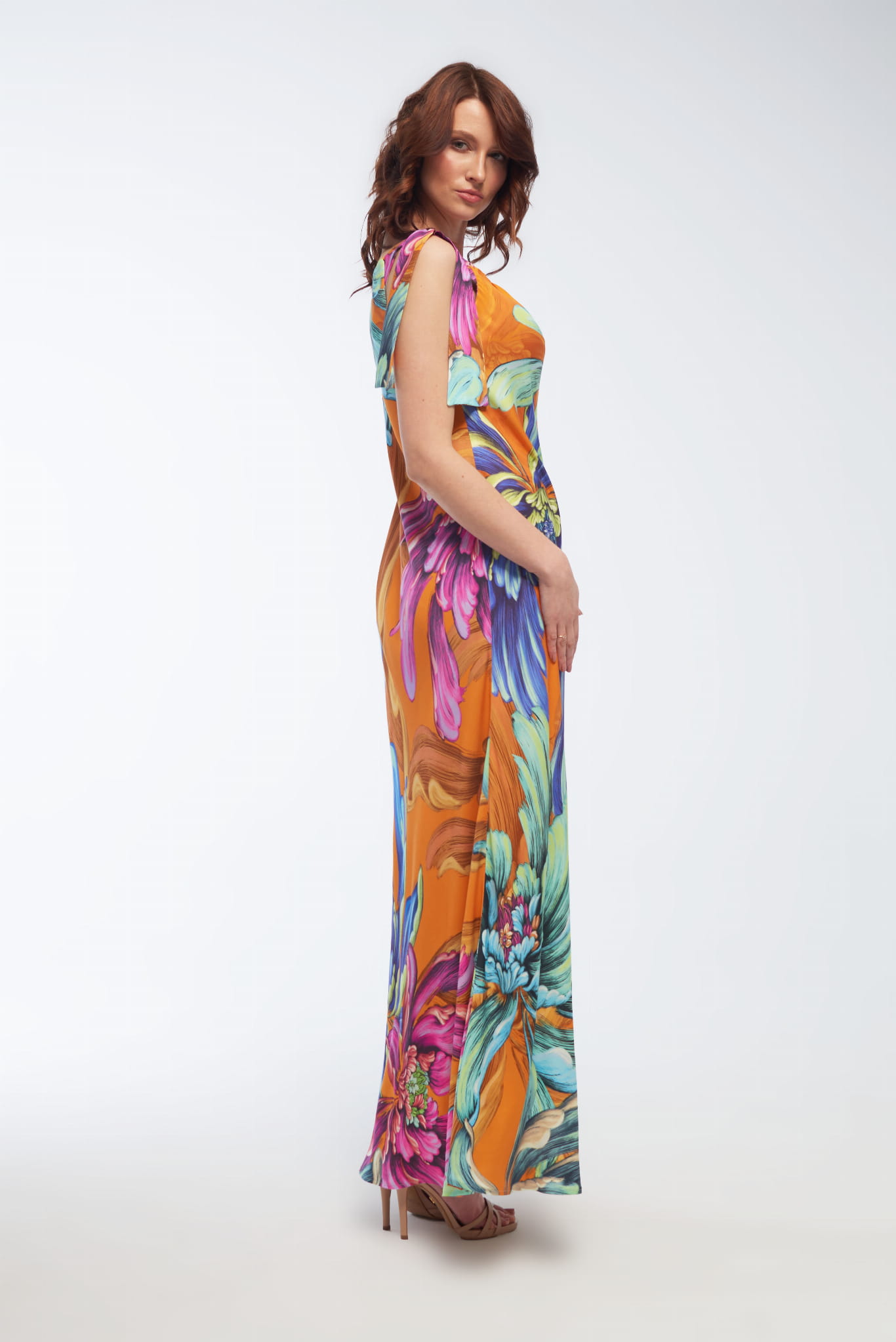 - długa sukienka z satyny wiskozowej, .