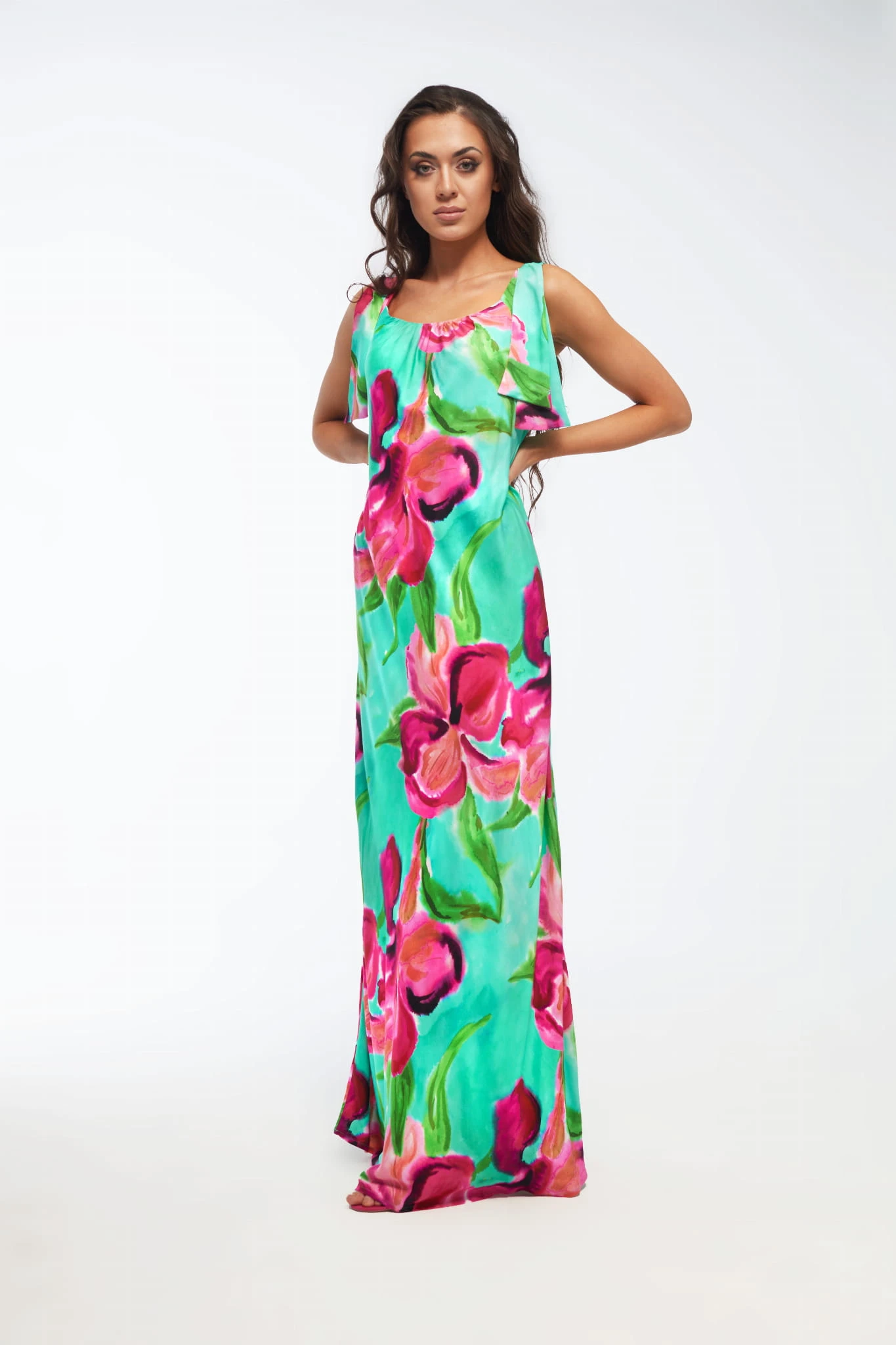 Subtelność i Elegancja: Elegancka, długa sukienka, która emanuje letnim urokiem i wyrafinowaną kobiecością. Wykonana z wysokiej jakości satyny wiskozowej, ta sukienka jest nie tylko wyjątkowo piękna, ale także wygodna w noszeniu. Jej lekko rozkloszowany dołem fason nadaje subtelny efekt delikatnego unoszenia się przy każdym kroku. VIVIANA to doskonały wybór dla kobiet ceniących sobie elegancję, wygodę i letnią lekkość. Idealna na różne okazje, od letnich imprez po romantyczne wieczory. Sukienka VIVIANA jest esencją kobiecej finezji i luksusu.