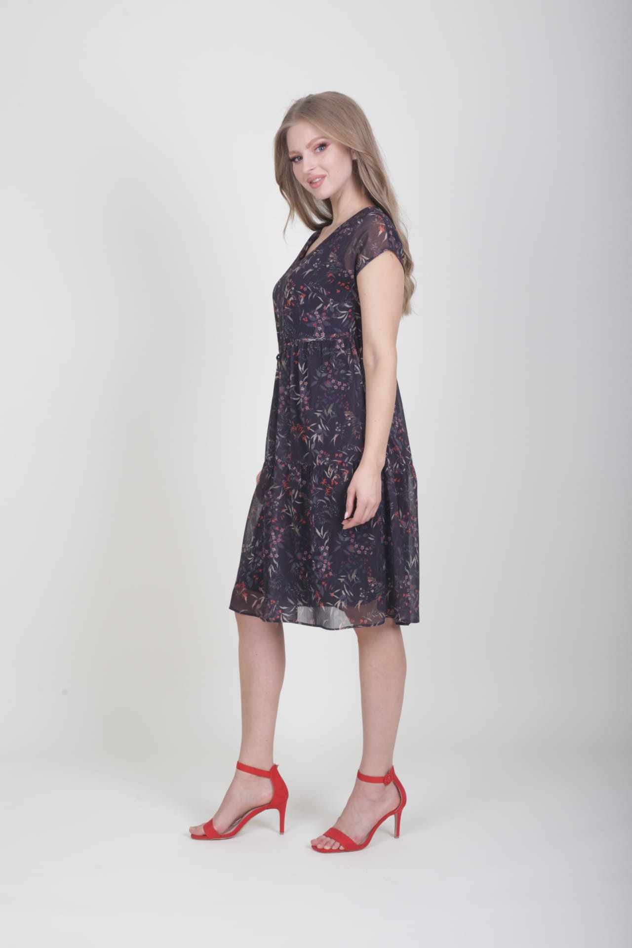- sukienka szyfonowa, krótka, granatowa z motywem kwiatowym