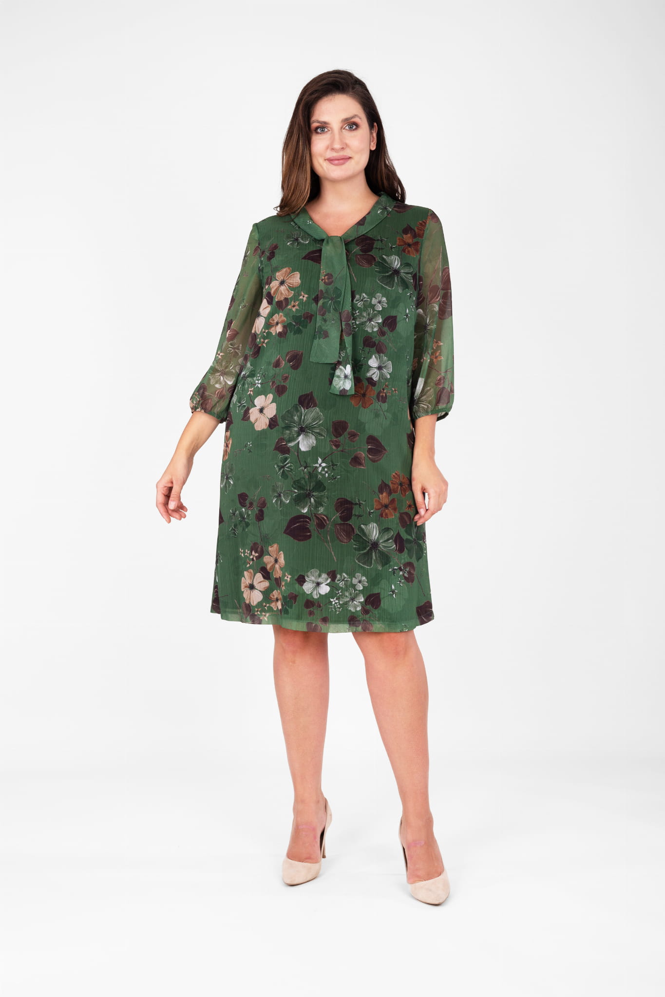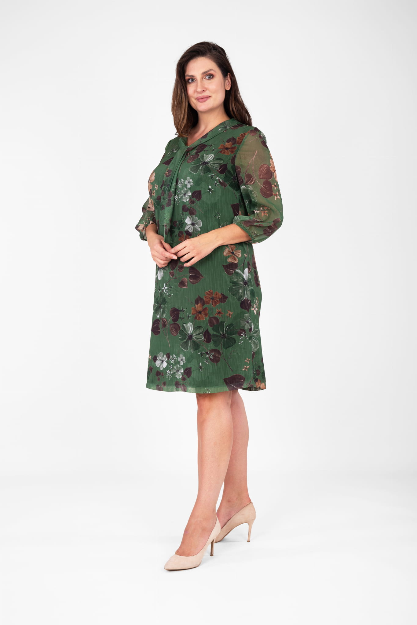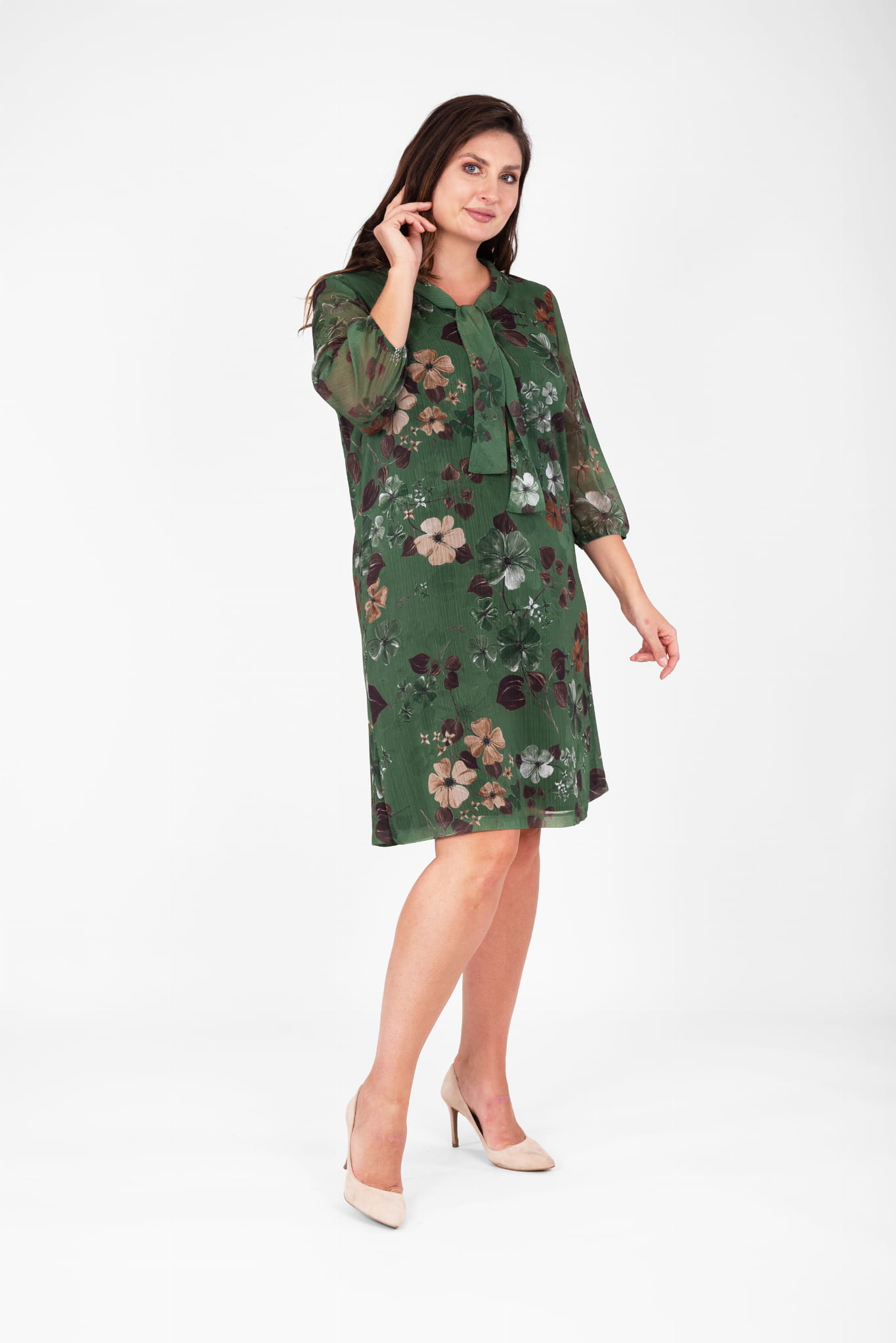 - sukienka szyfonowa, w kolorze zielonym z motywem kwiatowym
