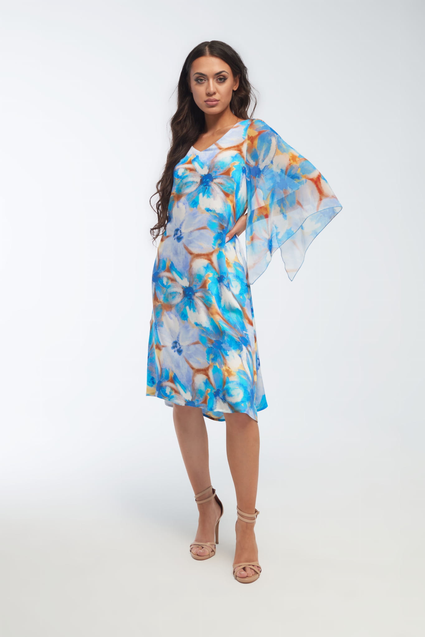 Lekkość Stylu : Trapezowa sukienka MARTITA to kwintesencja letniego uroku, łącząca w sobie delikatność satyny wiskozowej z romantycznym szyfonem, stworzona dla kobiet, które cenią sobie wyjątkowe detale i wysoką jakość. Delikatne kwiatowe wzory drukowane na tkaninie dodają jej letniego uroku, tworząc stylowy i wyjątkowy wygląd, który będzie pasował tak zarówno na romantyczne spacery po plaży, deptaku w letnim kurorcie czy nadmorskim molo jak i na eleganckie spotkania. Jeśli szukasz czegoś wyjątkowego na wytworne imprezy, takie jak wesela, przyjęcia czy uroczystości rodzinne, ta sukienka będzie strzałem w dziesiątkę. Jej klasyczny krój i subtelne wykończenia sprawią, że będziesz błyszczeć na każdym evencie.