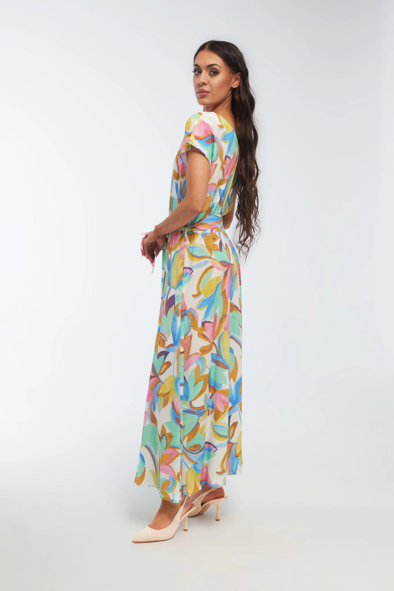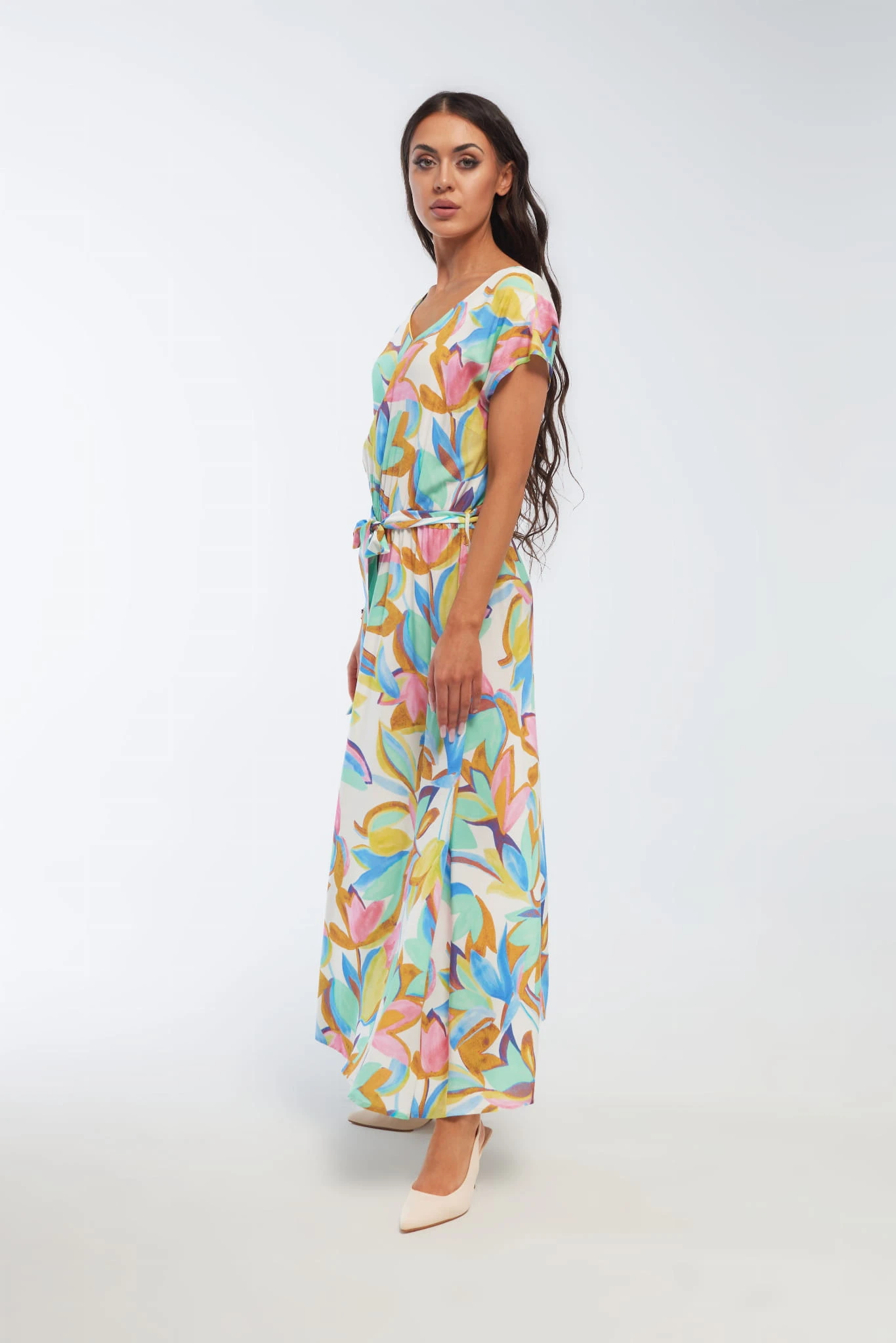 - długa sukienka z wiskozy, z motywem kwiatowym