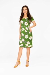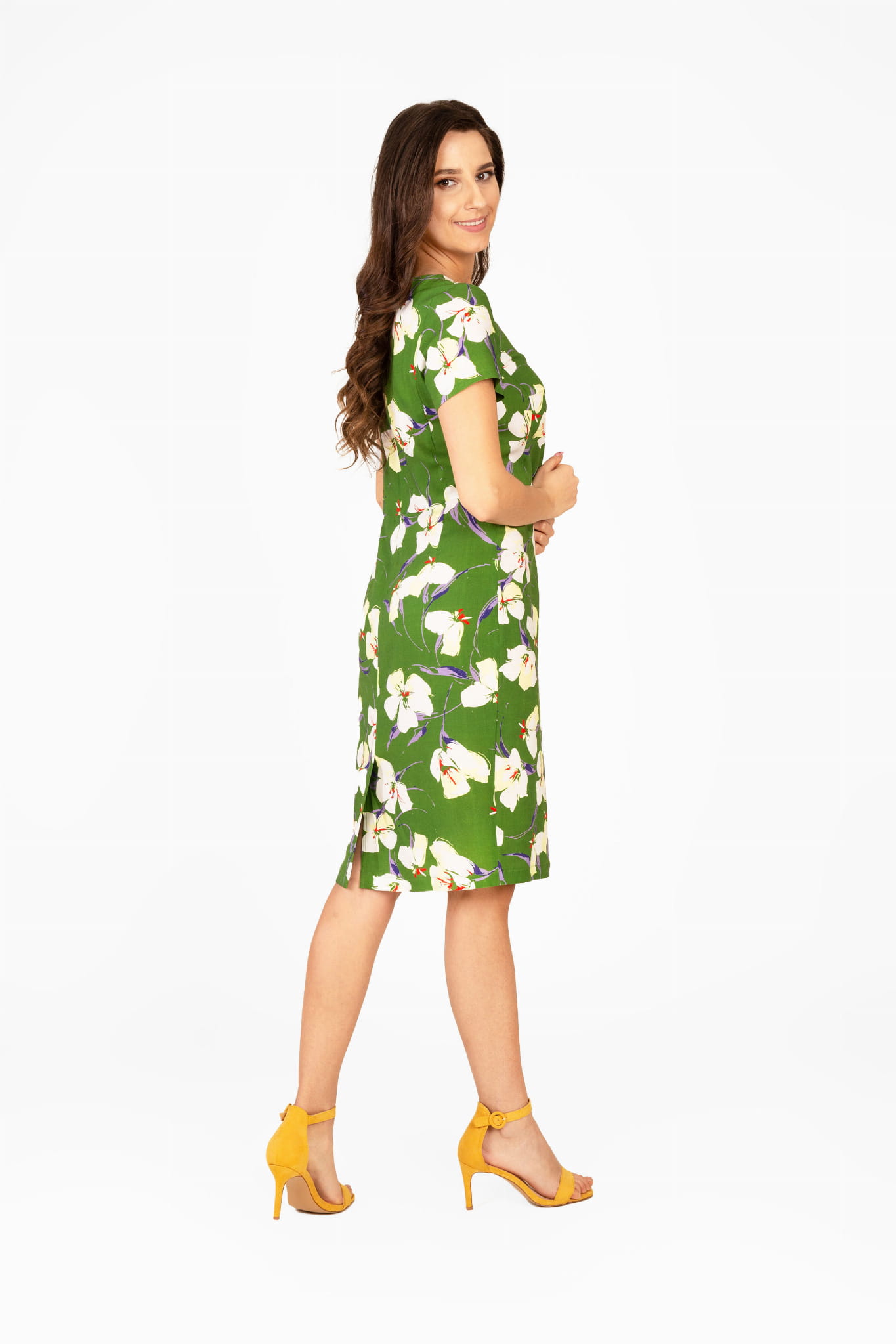 - krótka sukienka z motywem kwiatowym w kolorze zielonym