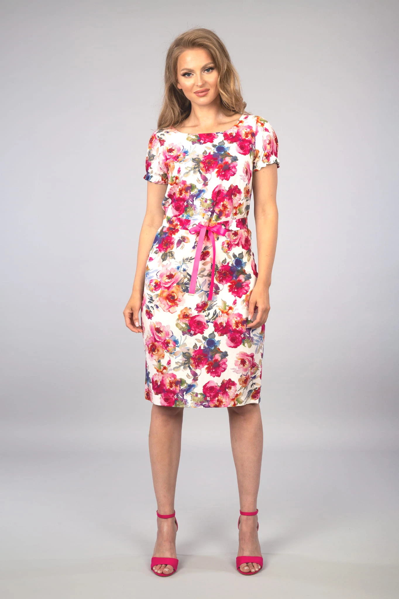 - krótka sukienka z motywem kwiatowym w kolorze różowym
