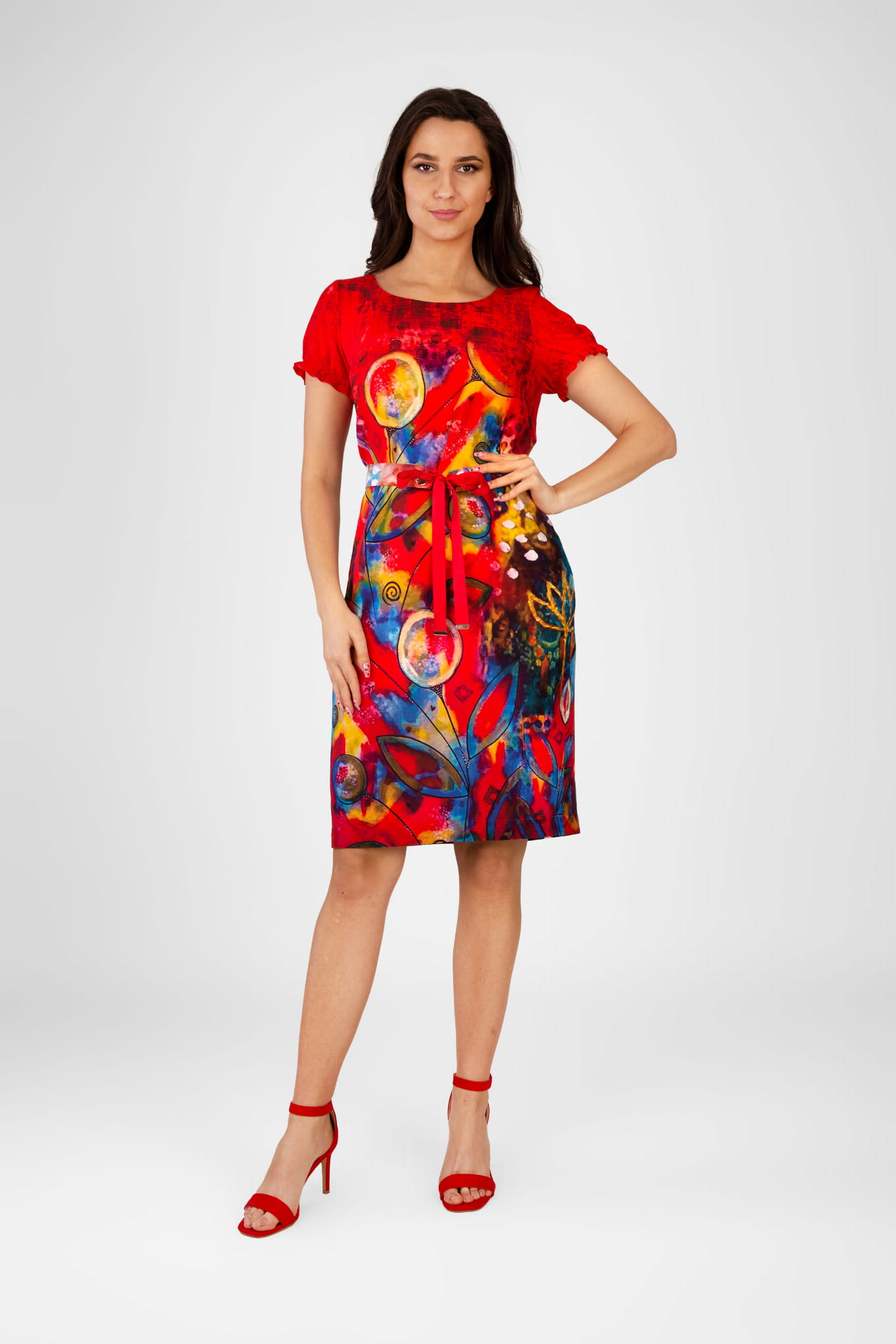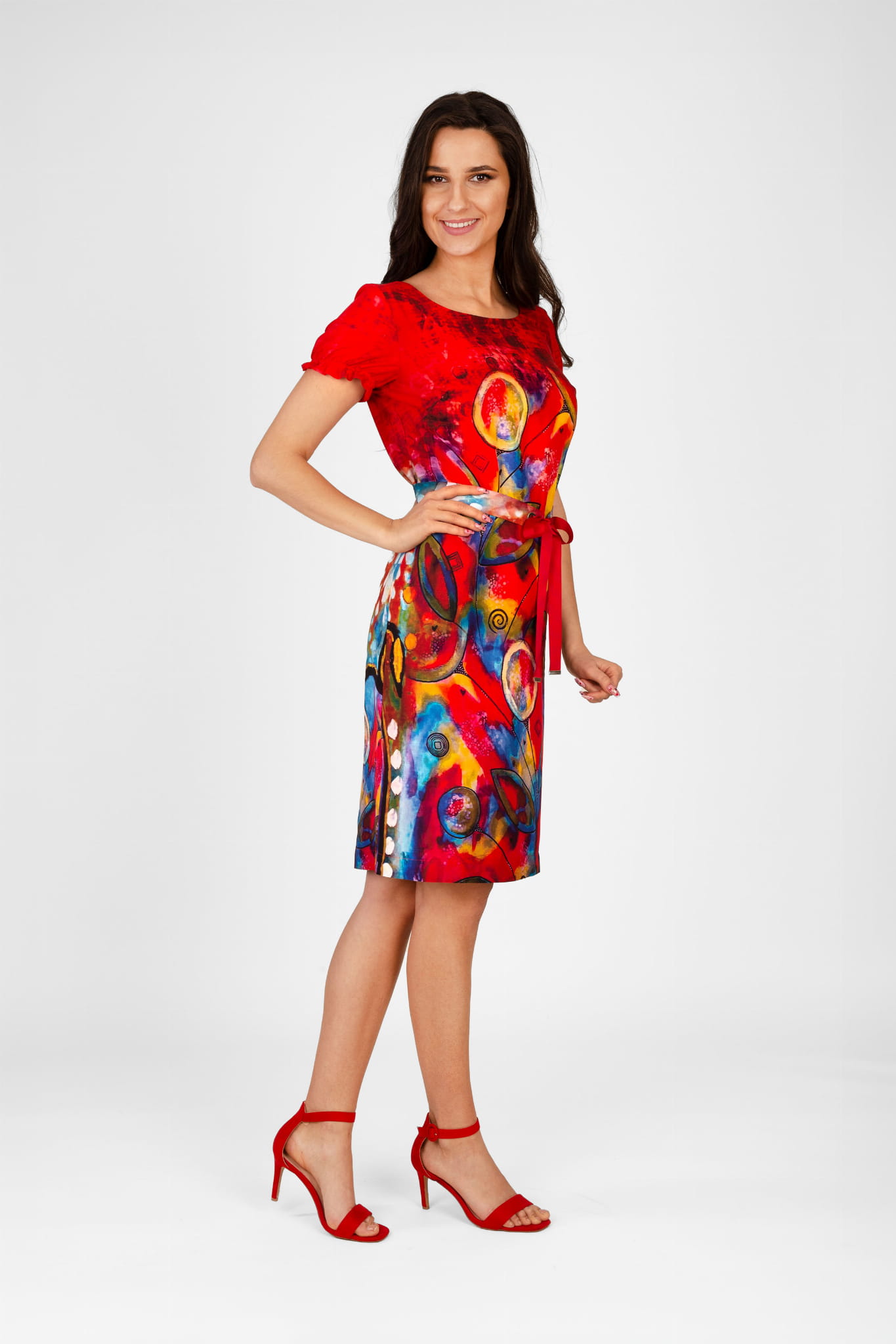 - krótka sukienka wzorzysta w kolorze czerwonym